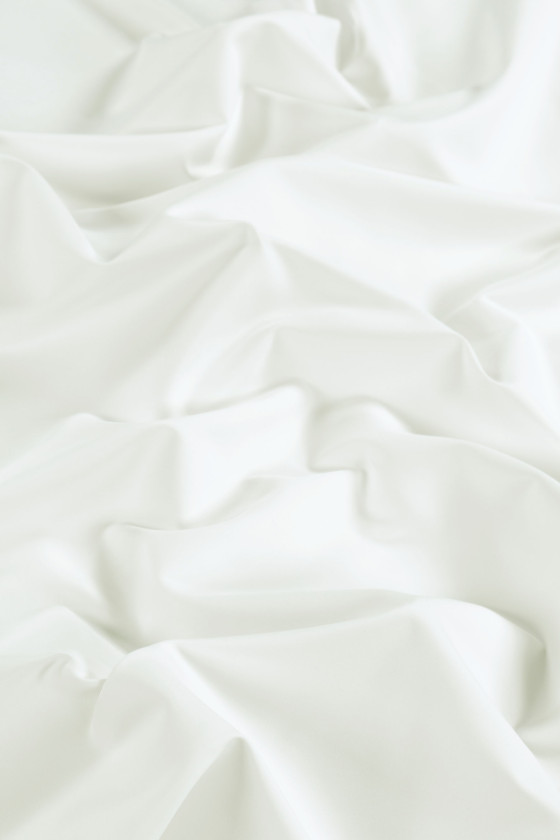 Tejido de algodón italiano con la adición de elastano en color crudo. Un tejido elástico de grosor medio y un tejido liso y delicadamente brillante destinado a coser un vestido, una falda o un pantalón. Tejido natural de muy buena calidad, la adición de elastano hace que sea más cómodo de usar y se arruga menos. Un tejido insustituible en primavera y verano.