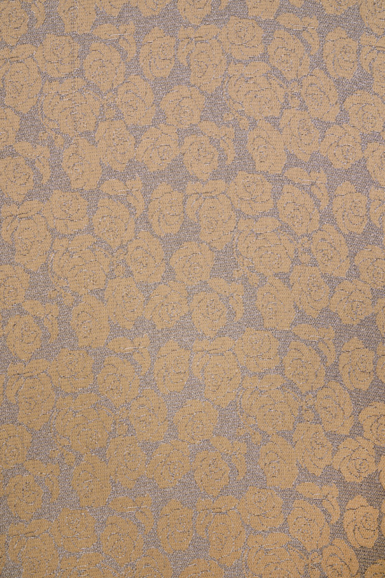 Tela de traje de chanel italiana en color beige con motivo de flores rosas plateadas. Tejido suave con un tejido más suelto: se puede coser por ambos lados. Perfecto para abrigos finos, disfraces y faldas.