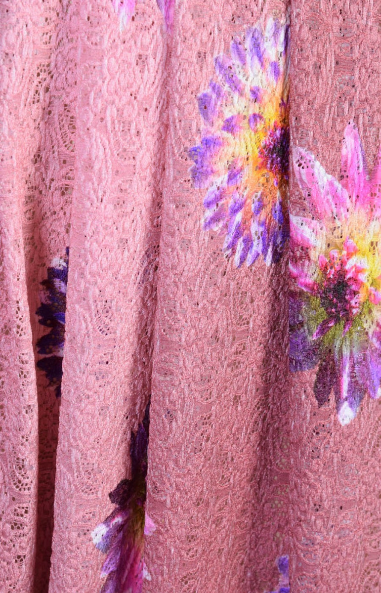 Encaje con flores elásticas, sombreadas. Perfecto para blusas, vestidos.