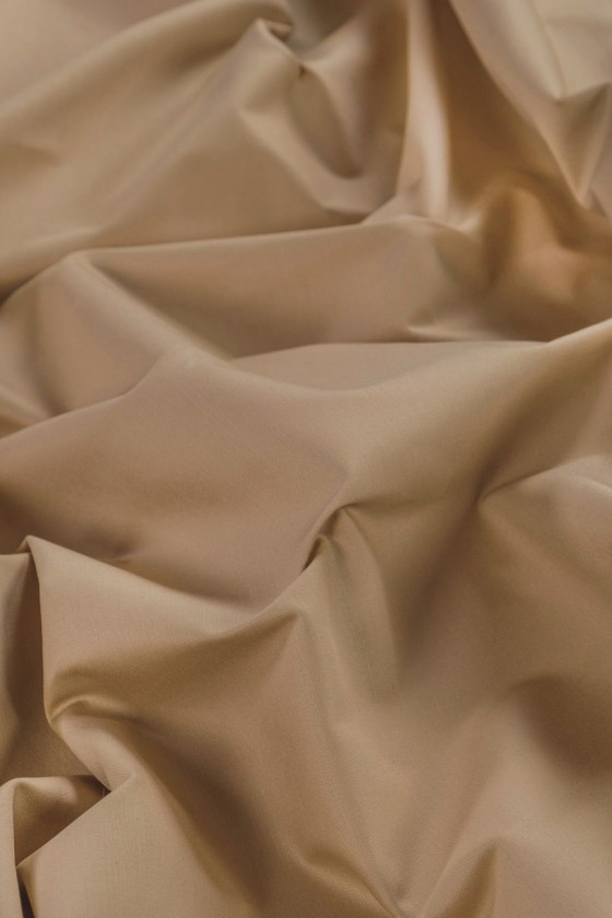 Tejido camisero italiano tejido en algodón 100% toffee. El tejido es fino pero opaco, no elástico, ligeramente satinado y ligeramente rígido. Lo recomendamos para camisas, blusas, vestidos de verano.