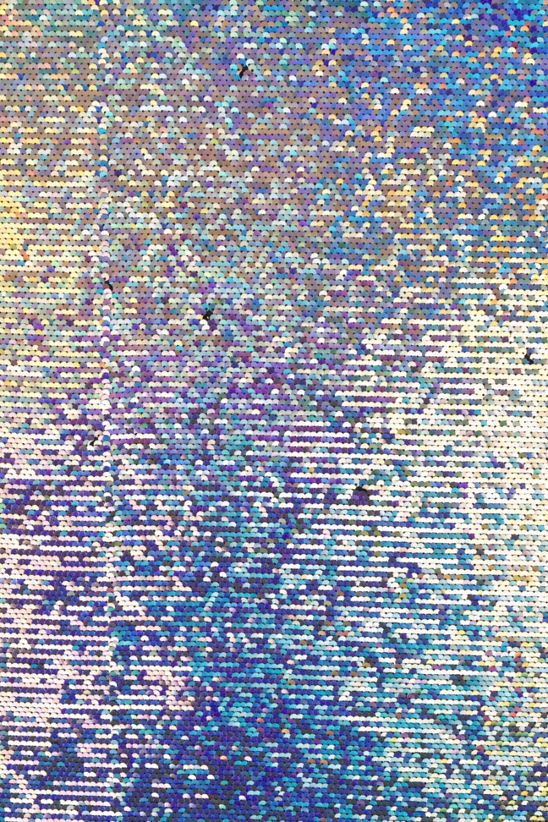 Tela de noche italiana: lentejuelas volteadas por un lado negras y lentejuelas de holograma por el otro, cosidas en una tela de punto elástica.