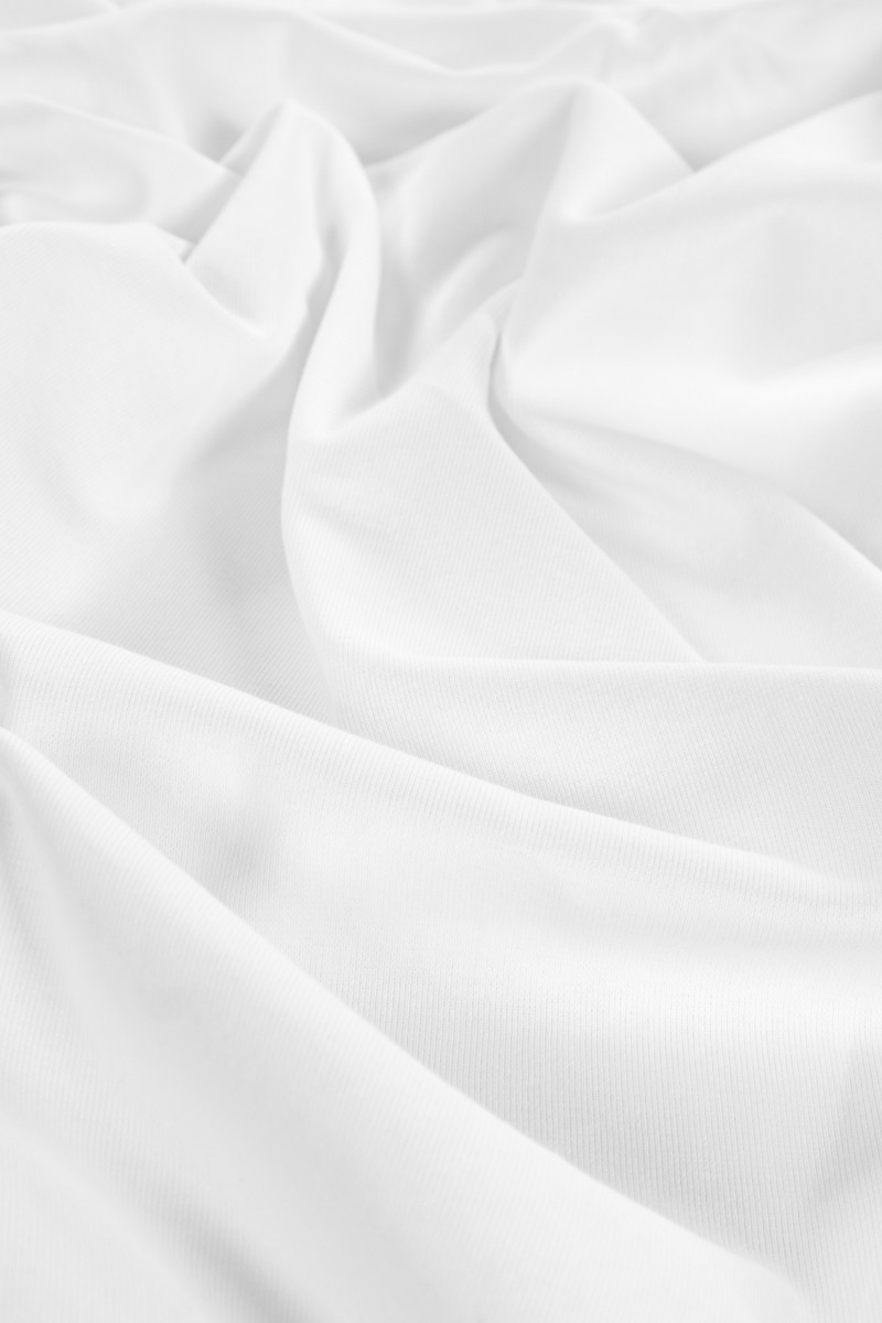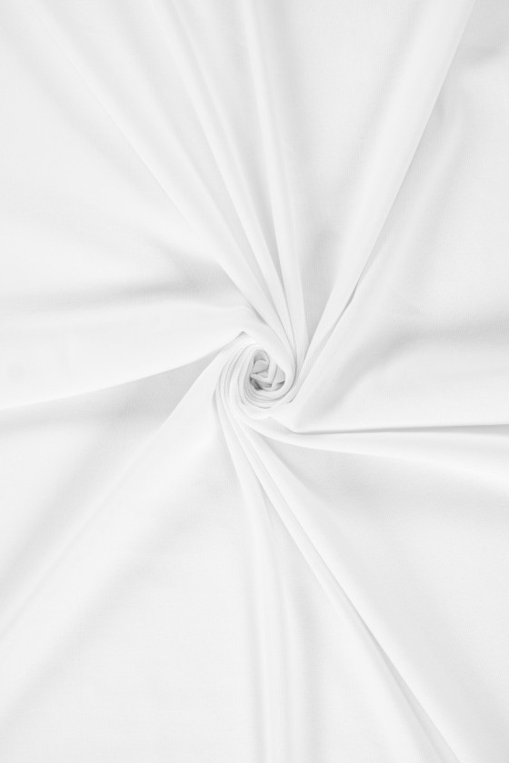 Tejido de punto racer de algodón italiano en color blanco, 85 cm de ancho. Tejido con un característico tejido acanalado.