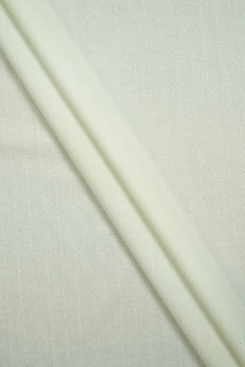 Tela de traje italiana tejida de lana en color aguamarina clara en finísimas rayas blancas. La distancia entre las tiras es de 1,5 cm. Tejido de muy buena calidad, es suave, fino, inelástico. Perfecto para coser un disfraz, pantalones, falda, vestido.