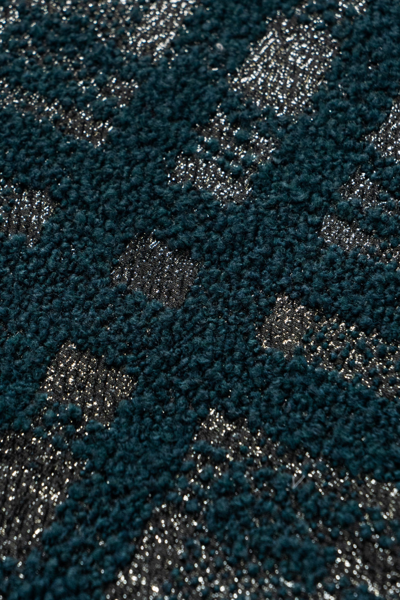 Tejido de traje de tejido de bucle italiano en color verde mar con motivo de cuadros plateados. Tejido tejido de lana natural con la adición de hilo de lúrex, muy efectivo.
