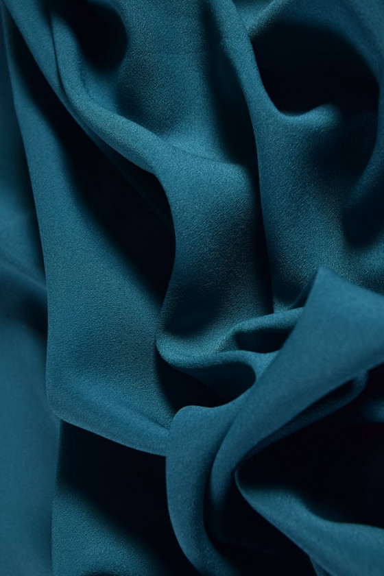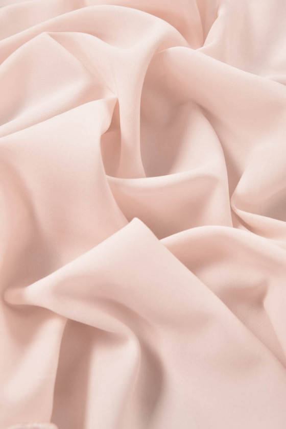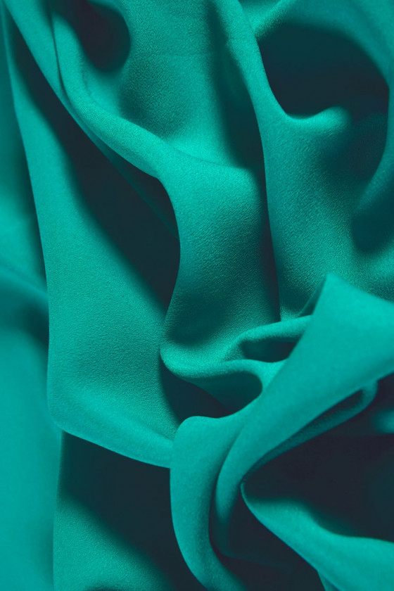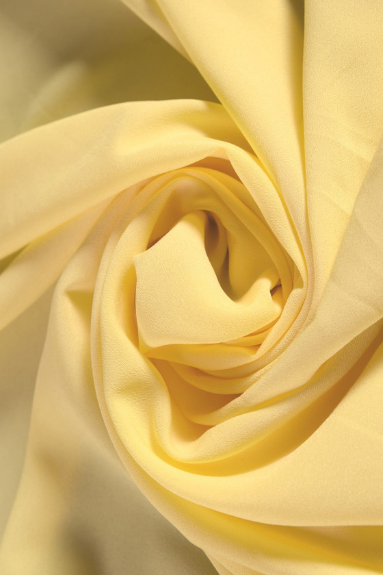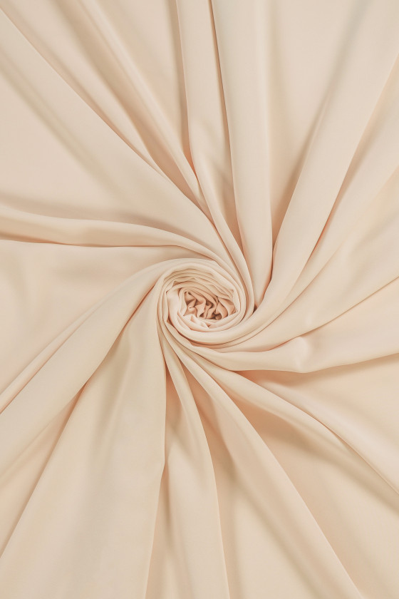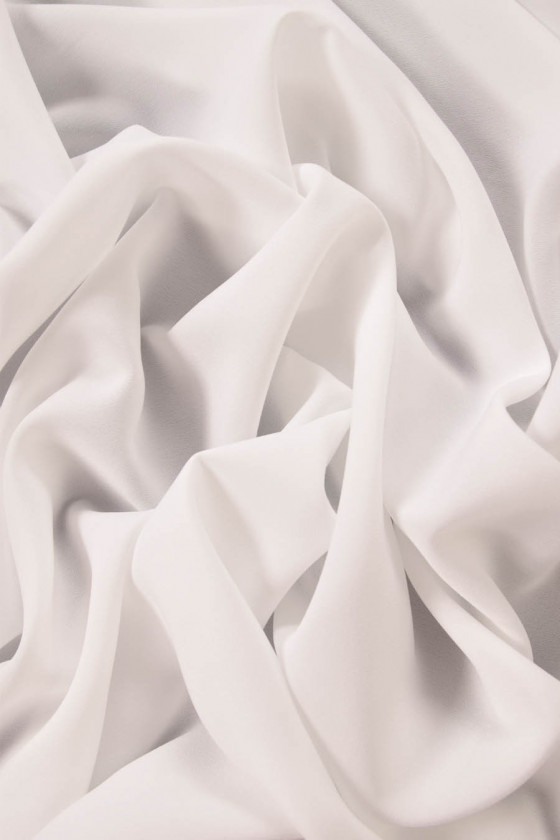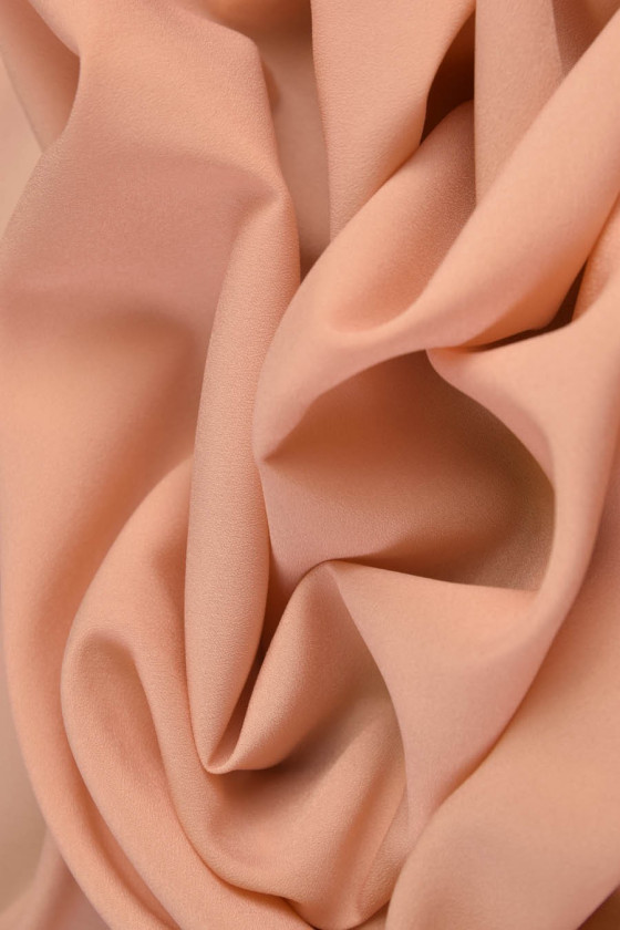 El crepé de poliéster es un tejido ligero, fino, delicadamente opaco y semimate. Se puede utilizar para evocar vestidos vaporosos, blusas delicadas, bufandas, bufandas o usarlo para forrar, por ejemplo, encaje o gasa.