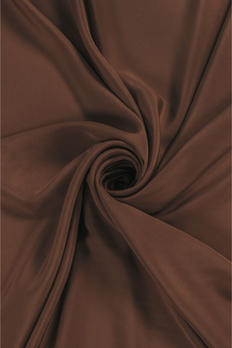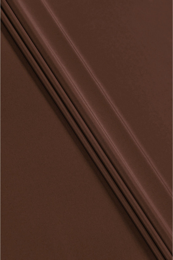 Vestido cadí italiano en tejido marrón. El tejido cadí es opaco, carnoso, fluido (pesado), inelástico con un ligero brillo.