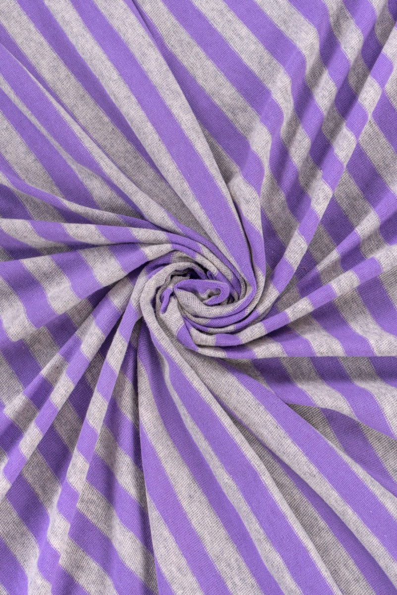 Tejido de punto de viscosa italiana con rayas gris-moradas, de muy buena calidad. Perfecto para coser una blusa o una camiseta.