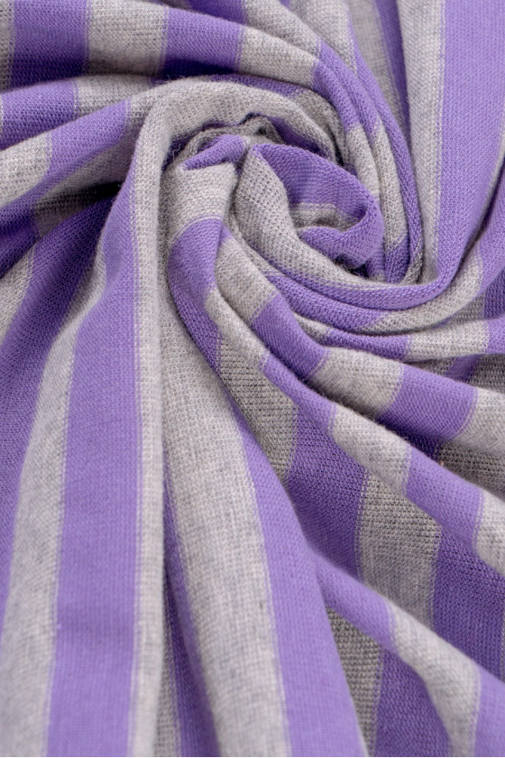 Tela de punto de viscosa italiana con rayas gris-moradas, de muy buena calidad. Perfecto para coser una blusa o camiseta.