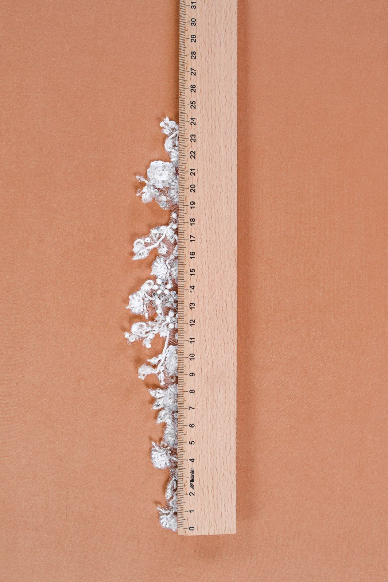 Una tienda de accesorios para bodas. Una hermosa aplicación para coser en vestidos de novia o de noche. Ricamente decorado con lentejuelas multicolor