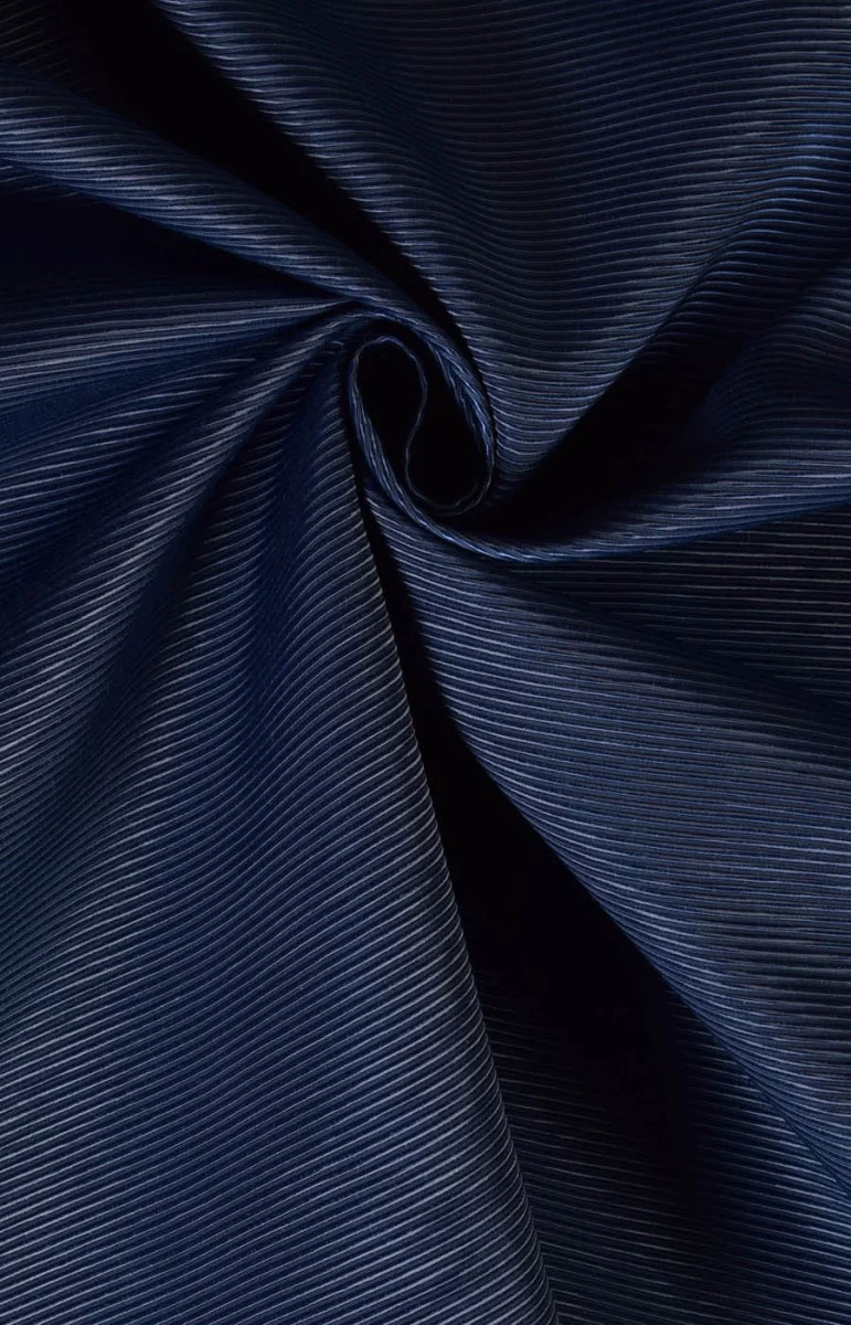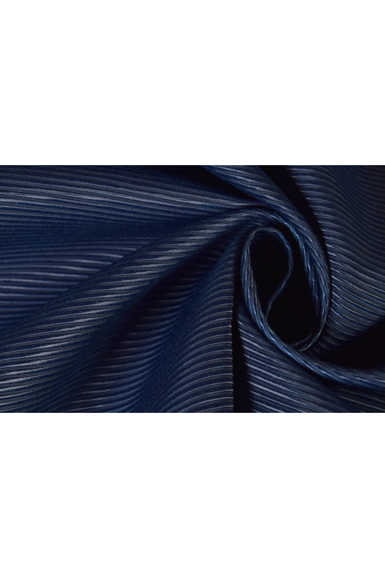 Tejido con un característico grosgrain en color azul marino. El tejido no es elástico, ligeramente rígido, con un brillo delicado, suave al tacto. Perfecto para abrigos finos, chaquetas, faldas amplias.